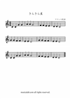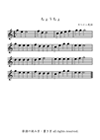 ♪楽譜の書き方ト音記号を五線の左端に、4分の4拍子をト音記号の右に描き、小節線と終止線を引いて音楽記号を並べます。最後に見出しをつけて、ちょうちょの楽譜が完成します。 |